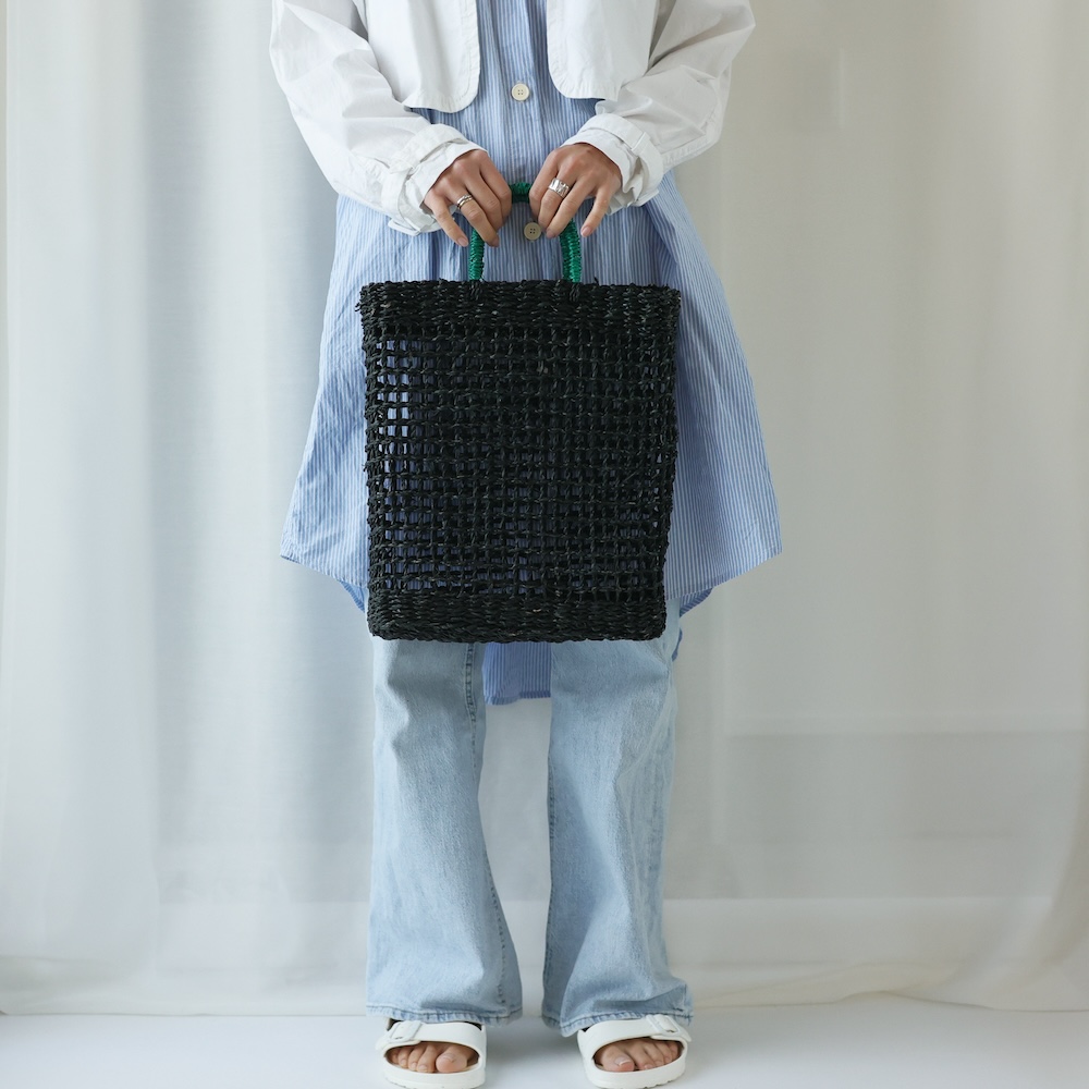 ベトナム・ハノイ。人々の生活の中に当たり前にあるカゴを、トートバッグの形に落とし込みました。使用しているのは シ ー グ ラ ス( 水 草 )。