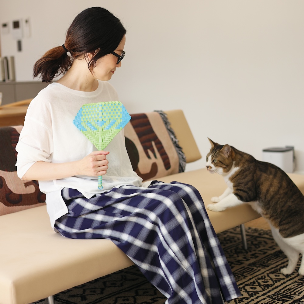 ポップな色使いが目をひく、タイの職人がひとつひとつ丁寧に編み上げた、プラスチック製のうちわです。