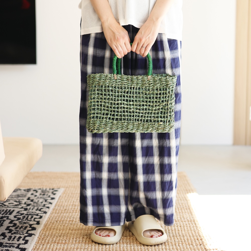 | 注意事項 | ※現地の素材を活かし、ひとつひとつ職人が手作業で編んで生産をしています。そのため仕上がりサイズ・色・編み方など細部の作りに個体差が生じる場合がございます。ハンドメイドによる風合いとしてお楽しみください。 ※素材の特性上、ささくれや編み終わりが出ていたり、毛羽立ちや自然なカケ、角の折れ、黒ずみ、焦げ目、ゆがみなどがございます。 ・湿気の多い場所に保管すると色落ちやカビの原因となる恐れがあります。保管の際はビニール袋などに入れず、直射日光が当たらない風通しの良い場所に置いてください。 ※過度な力が加わったり、重いものを入れると編み目が開いたり破れたりする場合がございます。 ・濃色の商品は強い摩擦により毛羽立ったり色落ちや色移りする場合がございます。 ※付属のタグは紙製の為、破れやすく多少の折れや汚れがある場合がございます。ご了承ください。 |