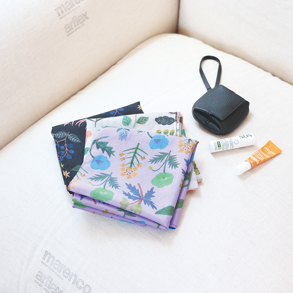60×60cmのゆったりサイズだから、ハンカチとしてはもちろん、お弁当包みやバッグの目隠しにしたり、ちょっとしたクロス代わりにも使えます。