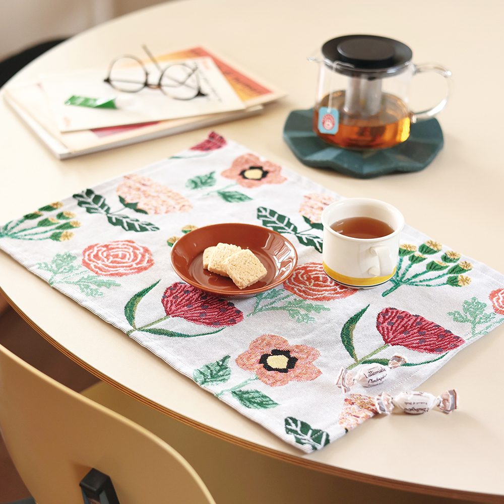 松尾ミユキさんの描く優しくあたたかなお花をゴブラン織りの生地に落とし込みました。