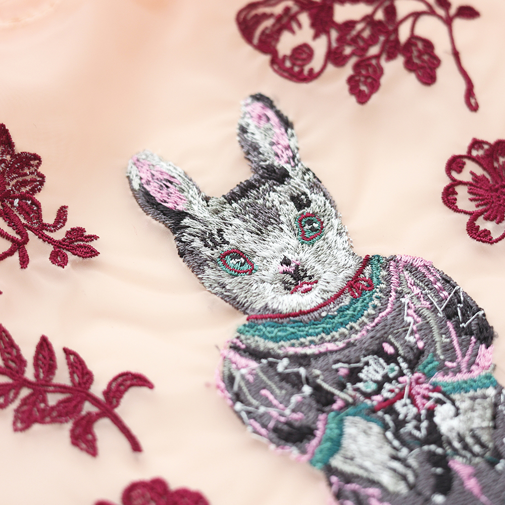 | 注意事項 | ※製造工程上、刺繍の裏側に紙(接着芯)が残っている場合がございます。またイラストを全て刺繍で表現しており、糸が続いて縫われている場合がございます。良品の範囲内としてご理解くださいますようお願いいたします。 ※繊細な風合いの生地を使用しています。ご使用の際は引っ張ったり引っ掛けないようご注意ください。また強い摩擦を加えないでください。破れの原因になります。 ※先端の鋭利なものを直接入れないでください。 ※摩擦、汗、水濡れなどにより色落ちや色移りをすることがございますのでご注意ください。 ※濡れたまま放置しないでください。縮みやシワの原因になります。 ※火気の近くに置かないでください。 ※薬品(アルコールやベンジン)などは使用しないでください。シミや変色の原因となる恐れがあります。 ※洗濯はしないでください。汚れた場合は布で拭き取ってください。 |