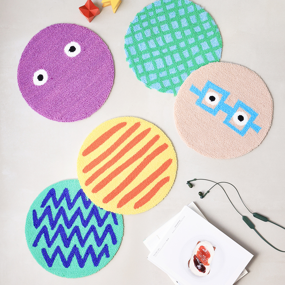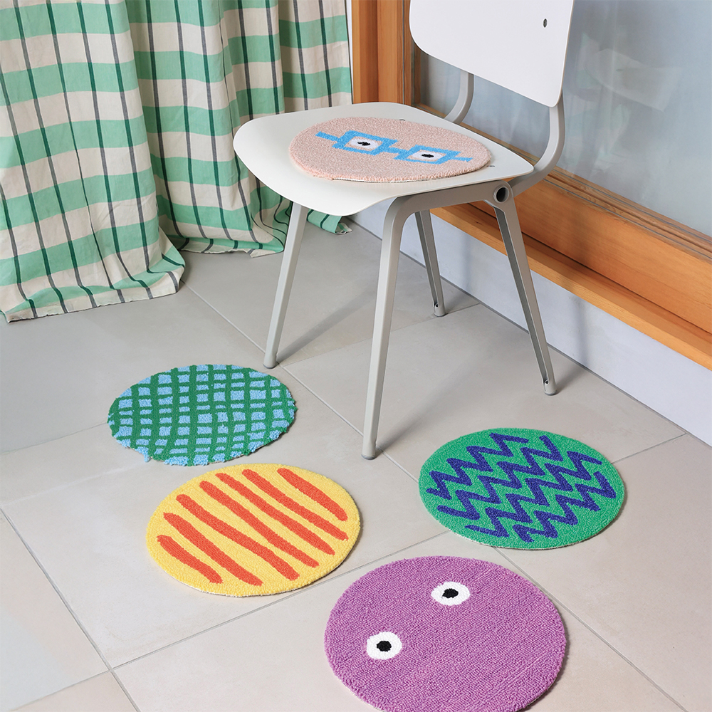 Gomaさんが描く、ポップながら手描きの温かさが伝わるデザインをモチーフにしたラウンドマットです。