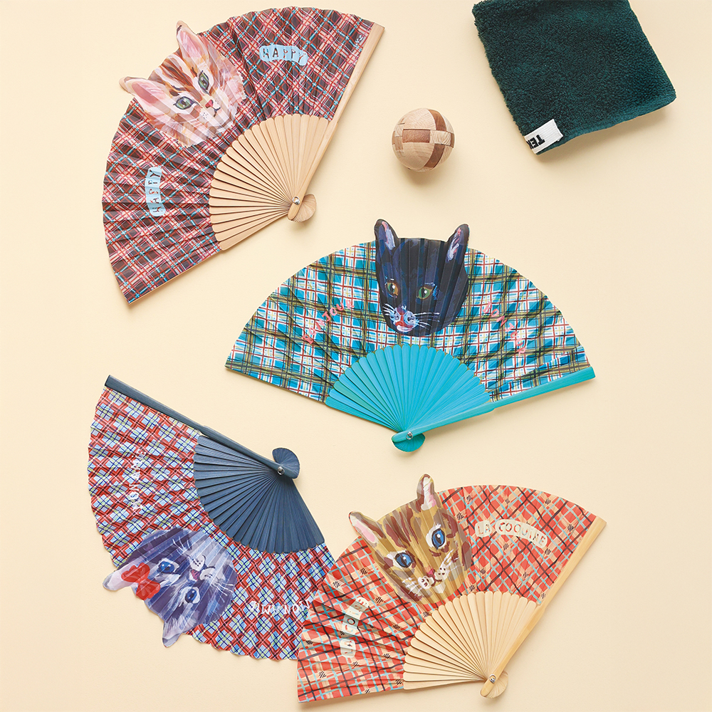 ナタリー・レテ が描くネコたちの顔がそのまま扇子になりました。